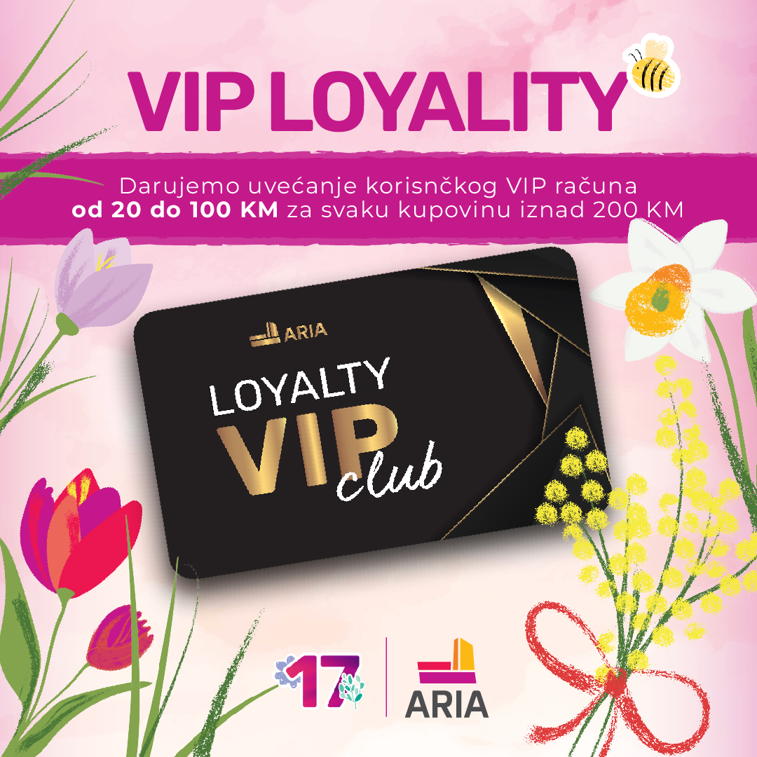 Posebnu pogodnost ARIA mall priprema i za članove svog VIP Loyalty programa – samo na dan proslave, kupci će za svaku kupovinu iznad 200 KM ostvariti dodatni iznos na svom korisničkom računu.