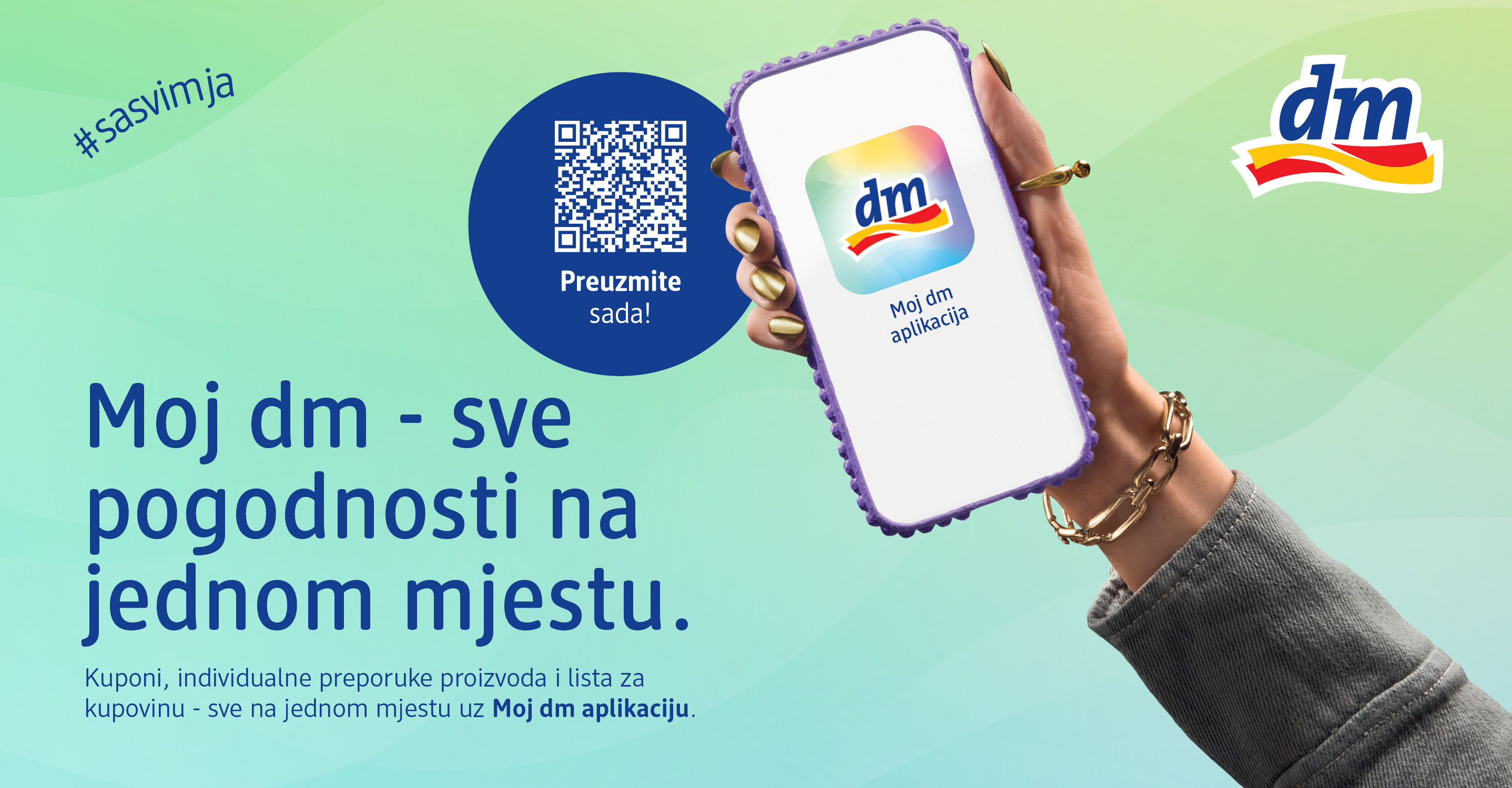 Uz Moj dm aplikaciju i dm active beauty program lojalnosti, kupovina u dm-u postaje jednostavnija, personalizovana i još povoljnija. Sve što vam treba za pametniju kupovinu - uvijek je pri ruci.